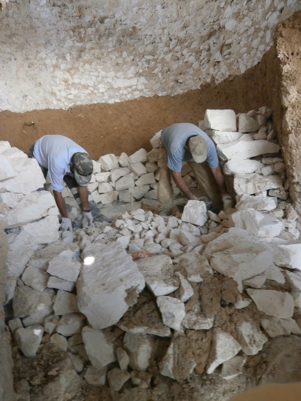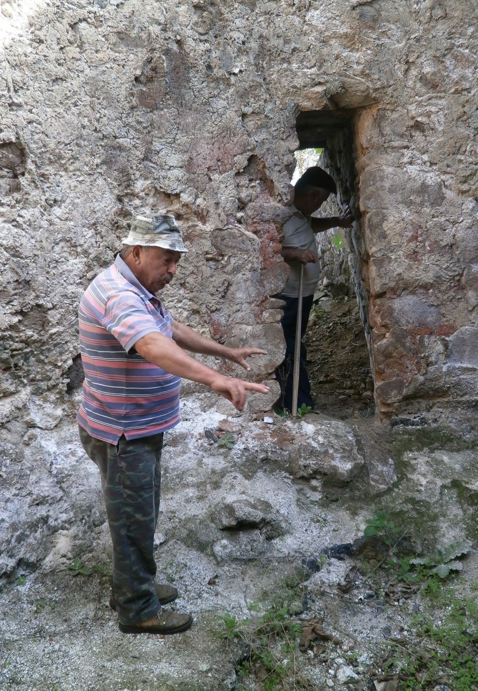 • Campanha de entrevistas com caleiros da zona de Trigaches – Na aldeia de Trigaches ainda moram antigos caleiros. Foram contatados o senhor João Galhana, de 67 anos e o senhor Jacinto Figueira, de 70 anos. Na companhia deles foram realizadas visitas aos fornos, conversas informais e entrevistas abertas que permitiram perceber melhor o modo de preparação e de cozedura da cal e o escoamento da mesma, clarificar aspetos mal conhecidos ou mesmo contraditórios desses processos, assim como percecionar a forte marca dessa atividade na vida das pessoas que a desenvolviam. Nestas conversas foi-se conhecendo também a terminologia que era utilizada, sendo que alguma desta é desconhecida da comunidade científica (Figuras 1-5).