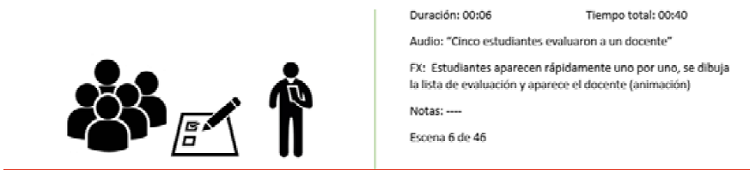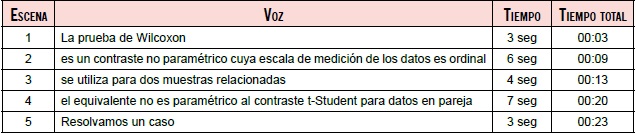 Como resultado del diseño, obtuvimos un video de 3:23 minutos con un tamaño de 16.2 Mb. La figura 3 muestra el diseño final de la escena expuesta en la figura 1 correspondiente al storyboard del video del contraste no paramétrico Wilcoxon.