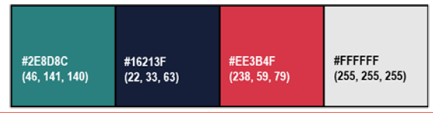 Para la selección de los colores, consideramos las características de la intensidad de la iluminación en los dispositivos portátiles, así como el reflejo de la luz externa en el dispositivo. Por este motivo, preferimos colores oscuros con texto blanco o, viceversa, para favorecer el contraste en la pantalla y resaltar la información, además de evitar el uso de colores claros para las imágenes y el texto. Finalmente, nos decidimos por la paleta de colores que mostramos en la figura 2.