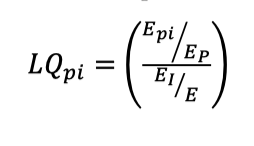 There has been an increase in employment in that sector compared to the previous year. This last point is aimed at excluding those specialisations that appear in connection to a decrease in the area’s employment rather than an increase in the specific industry (Xiao et al., 2017).