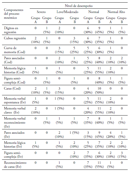 A continuación se presentan los componentes del proceso mnémico, por nivel de desempeño (ver Tabla 6).
