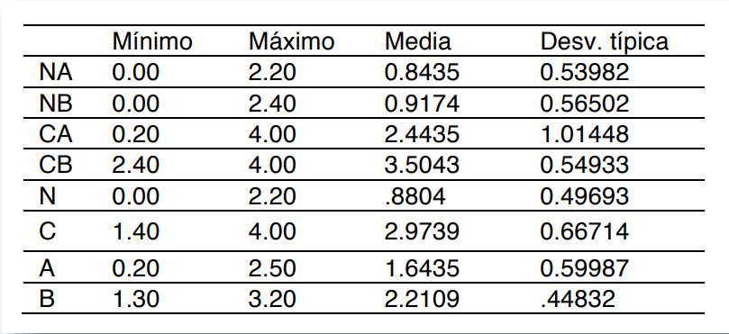 Como primera aproximación mostramos los descriptivos en la Tabla 6.