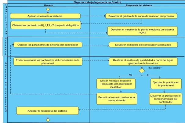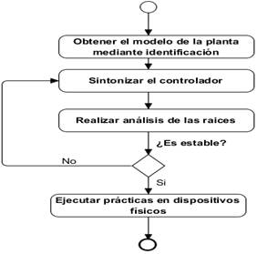 La Figura 3 muestra el flujo de las tres actividades fundamentales propuestas para el Sistema de Laboratorios Remotos (diseño de controladores, identificación de sistemas y ejecución de prácticas en sistemas físicos).