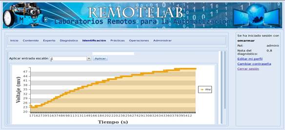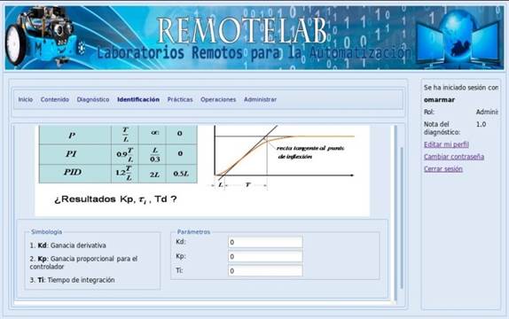 La Figura 6 muestra la interface del sistema para realizar la actividad de identificación de sistemas. La actividad identificación del sistema permite realizar prácticas de identificación del sistema a controlar. El estudiante realiza una aproximación mediante un Sistema de Primer Orden con Retardo de Transporte (PORT).