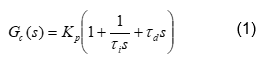 Con L y T, se obtienen los parámetros del controlador PID obteniendo el modelo del controlador tal como muestra la ecuación 1 en el dominio continuo.