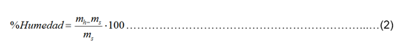 Humedad = 9,486 93 + 1,183 44/Dp Materia volátil = 77,863 - 1,0363 3/Dp