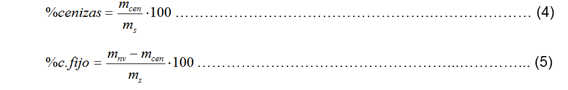 La determinación del contenido de humedad, materia volátil, cenizas y carbono fijo se realizó para cada una de las clases de tamaño de partículas obtenidas en el análisis por tamizado. Se realizaron cinco réplicas para cada una de estas propiedades, lo cual permitió hacer los análisis estadísticos correspondientes y las valoraciones necesarias para arribar a conclusiones.