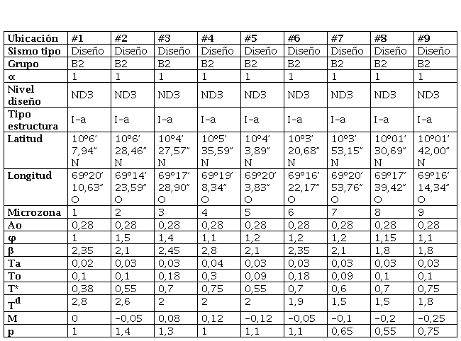 A continuación, se ofrece la Tabla 1 y Figura 7 donde se expresan los parámetros sísmicos representativos de cada ubicación asignada a los arquetipos, obtenidos de las exigencias de la Norma Venezolana COVENIN 1756-2019 [4] y la Ordenanza de Microzonificación Sísmica de la Región [5].