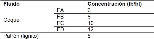 Cabe destacar que la máxima cantidad de controlador de filtrado que se debe emplear para este tipo de fluido es de 8 lb/bl, por tratarse de una emulsión inversa con 70% aceite y 30% agua, además de poseer CaCl2 al 30% (Samán Tecnología Integral en Petróleo, C.A ,2010). Como el objetivo de la investigación era conocer si el coque de petróleo puede ser empleado como controlador de filtrado se decidió emplear 12 lb/bl como máximo.