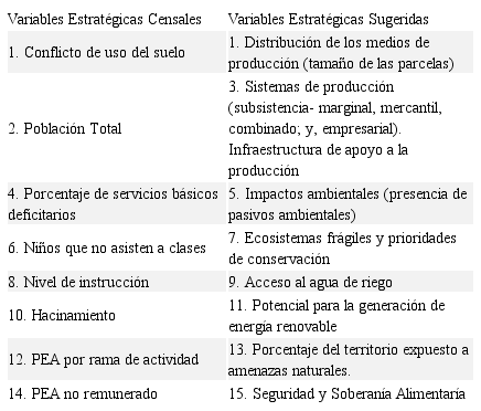 Se puede entender que para la zonificación con CUT se pretenda el análisis de algunas de las Variables Estratégicas Sugeridas, como el acceso al agua de riego, justamente debido a que se encamina a mejorar la productividad, aunque tampoco necesariamente para todas las zonas. Pero no se encuentra justificación para integrar variables censales a una zonificación agroproductiva que muestra la capacidad de uso de la tierra. La metodología para elaboración de los PDOT utiliza esta zonificación en la fase de propuesta, para la obtención posterior de las Categorías de Ordenamiento Territorial COT.