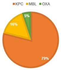 También se analizó en las cepas de Klebsiella pneumoniae cuáles eran productoras de BLEE y de carbapenemasas y el fenotipo que presentaban. Se observó un 9 % (n=2) de cepas productoras de BLEE y un 74 % (n=17) productoras de carbapenemasas, cuyo fenotipo más prevalente fue KPC (61 %, n=14) (Figura 9). A los aislamientos de Klebsiella pneumoniae productoras de carbapenemasas (n=17) se les realizo la CIM a MER por ETEST®,y se observaron 10 cepas (44 %) aptas (CIM a MER ≤16 µg/ml) y 7 (30 %) no aptas (CIM a MER ≥16 µg/ml) para la combinación de MER por infusión prolongada con otro ATB.