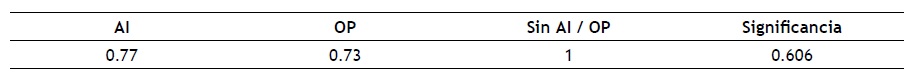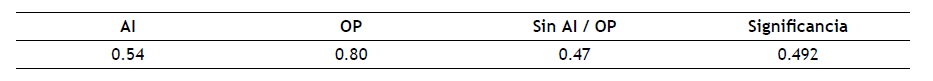 Con respecto a la comprensión de emociones negativas en sí mismos se observa que no se presentaron diferencias significativas (F = 0.491; p > 0.05) (Tabla 2). Sin embargo, las puntuaciones son un poco mayores, comparativamente con los resultados obtenidos en los anteriores análisis, alcanzando el n el caso de los niños sin AI ni OP. En la Tabla 2 se muestran los promedios obtenidos por los niños en la segunda historia.