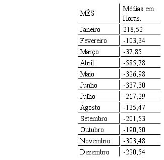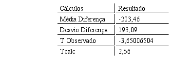 Portanto, as diferenças entre as médias mensais foram organizadas e, desses valores, foi retirada média geral e o seu desvio padrão para se obter o valor T observado que será utilizado no teste para médias populacionais.