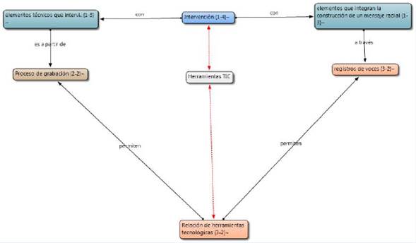 En este orden, se realizó una revisión teórica en lo que concierne al tema específico de la educomunicación y la radio escolar, estableciendo para el marco teórico cuatro categorías fundamentales (hecho escolar, comunicación, estrategia pedagógica y herramientas TIC), a partir de evidenciar situaciones problémicas de construcción e interpretación de enunciados en escenarios concretos de comunicación, indicativas del escaso recurso verbal entre estudiantes de educación rural, quienes en su mayoría experimentaron dificultades para construir e interpretar enunciados con mayor fluidez y claridad en cada entorno comunicativo.