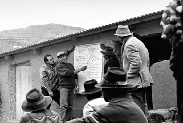 Para comprender mejor esto de los saberes locales, me permito remitir a AGRUCO (Centro de Agroecología de la Universidad de Cochabamba). En este lugar pudimos reflexionar sobre un modo particular de entender el mundo, una manera específica de llamar a los acontecimientos y formas especiales de reproducir este saber, que es fundamentalmente intuitivo y basado en la praxis de una determinada cultura con la naturaleza.
