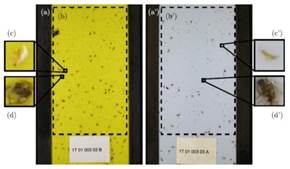 Espinoza, Valera, Torres, López, y Molina (Espinoza et al. 2016) justifican el trabajo que se muestra a continuación por incremento en la demanda de la seguridad y calidad en la comida que diariamente consumen las personas, para esto en el campo han aparecido una serie de normativas en referencia al manejo de plagas, por este motivo se buscan nuevas técnicas de detección y prevención. En su trabajo los autores presentan una red neuronal en conjunto con un algoritmo de procesamiento digital de imágenes para identificar las plagas más agresivas en cultivos de tomate de las granjas del sur de España las cuales son la mosca blanca y la pergande. El proceso consta de un algoritmo de identificación que por medio del procesamiento digital de imágenes extrae la región de estudio, segmenta el objeto y posteriormente una red neuronal clasifica el insecto dentro o fuera de los grupos de interés. En la figura 5 se observan las muestras que utilizaron.
