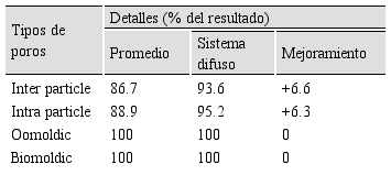 Con los resultados de cada método de extracción de características, se aplica un conjunto difuso el cual clasifica cada resultado, con el objetivo de determinar con mayor precisión el tipo de poro. En la tabla 1 se ilustra la mejoría en el porcentaje de acierto usando el conjunto difuso en comparación al promedio de los métodos.