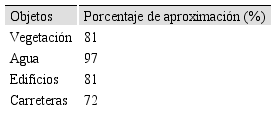 En la tabla 2 se pueden ver los resultados del programa utilizando la figura 3. Se obtuvo una calidad en la extracción de aproximadamente el 79% en comparación al 81% dela extracción realizada manualmente sobre el total del área de la imagen