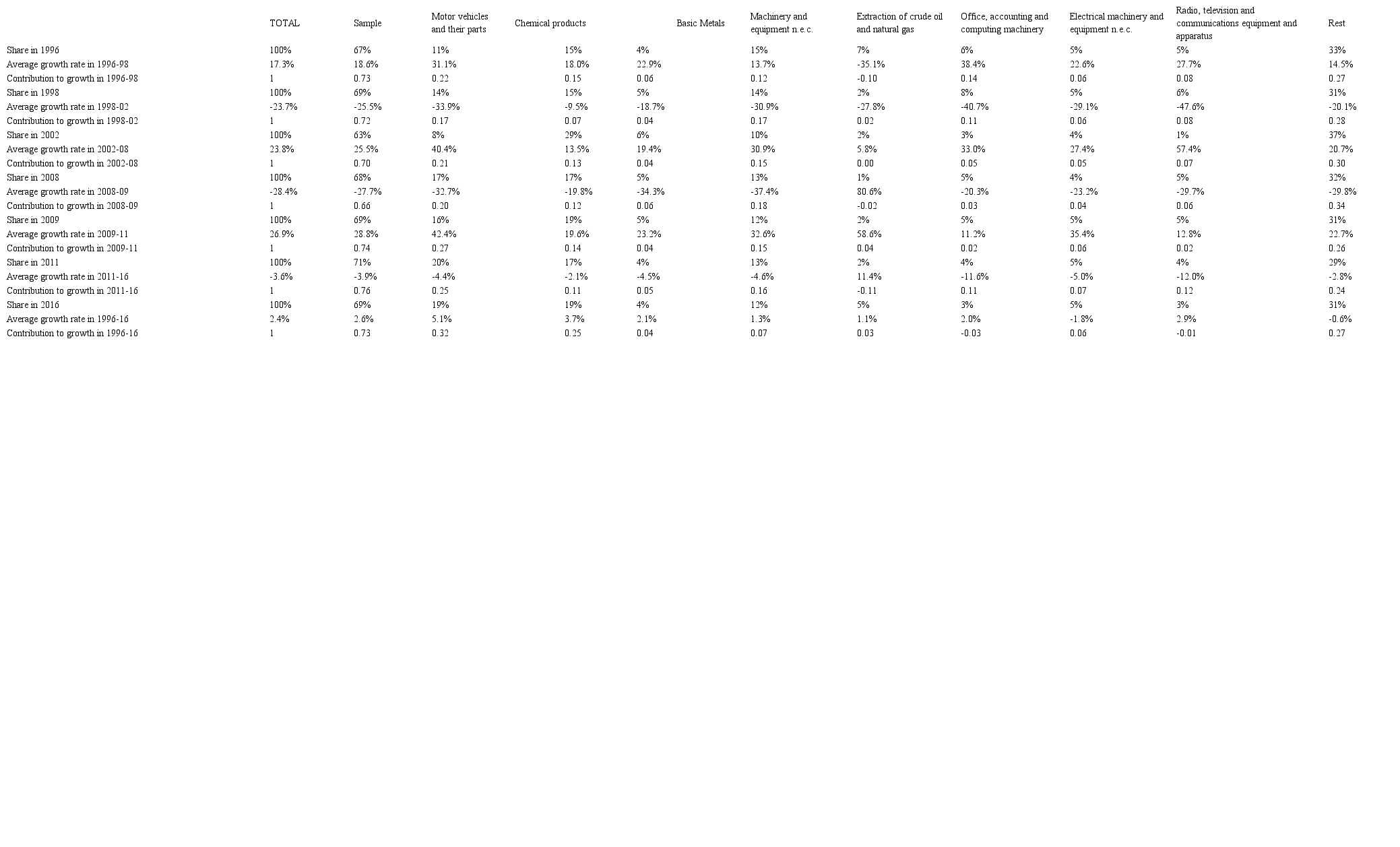 In this last section, we took advantage of our volume estimates to analyze the contribution of the main economic sectors in the growth rate of the real exports and imports during 1996-2016.