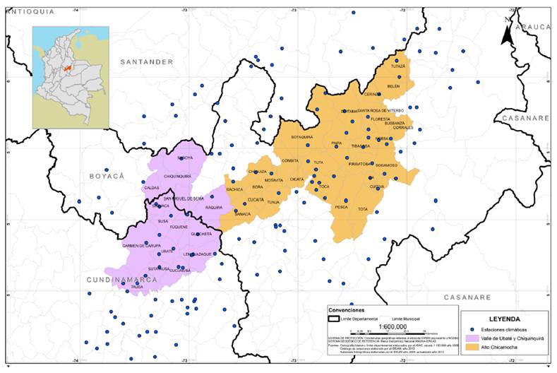 El Valle del Alto Chicamocha tiene una extensión aproximada de 363,900 ha entre 4° 33’ y los 5° 8’N y los 73° 35’ O, comprende los municipios de: Samacá, Cucaita, Tunja, Sáchica, Chiquiza, Motavita, Combita, Oicatá, Sotaquirá, Tuta, Toca, Pesca, Tota, Cuitiva, Duitama, Firavitoba, Iza, Nobsa, Paipa, Santa Rosa de Viterbo, Sogamoso, Tibasosa, Corrales, Busbanzá, Floresta, Cerinza, Belén y Tutazá (Corpoica, 2009) (Figura 1