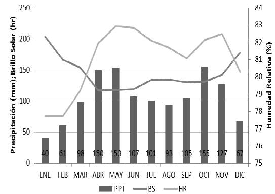 La diferencia trimestral de lluvias permite afirmar que la disponibilidad hídrica es menor durante el trimestre DEF, periodo en que se presentan los mayores problemas relacionados con ataque de plagas asociadas con aumento de temperatura del aire durante del día (Corpoica, 2012).