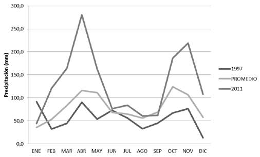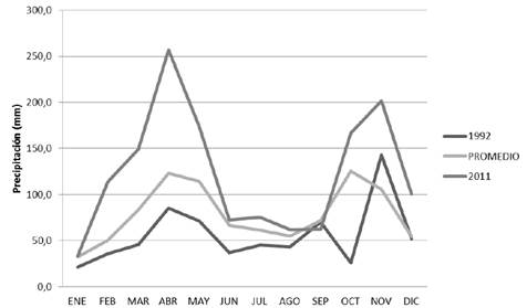 Comportamiento de la precipitación en años extremos (exceso y déficit)