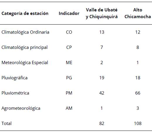 Una vez terminado el análisis de calidad de la información, se encontraron 82 estaciones con registros climáticos ubicadas en el Valle de Ubaté y Chiquinquirá y 108 en la región del Alto Chicamocha (Tabla 1 y Figura 1).