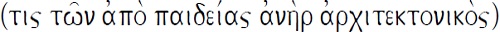 Cuando se va a fundar una ciudad para satisfacer los ambiciosos proyectos de algún rey o gobernante que, apropiándose de un poder sin límites y a la vez concibiendo brillantes ideas, busca añadir nuevo lustre a su prosperidad, algún arquitecto experto , tras acudir una y otra vez al lugar y observar sus ventajas de clima y posición, concibe primero en su mente el plano de casi todas las partes de la ciudad que se está a punto de fundar: templos, plazas, puertos, depósitos, calles, emplazamientos de murallas, ubicación de casas y demás edificios públicos.66