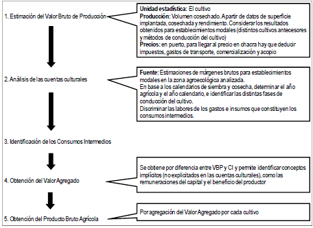 La Figura Nº 4 sintetiza la secuencia metodológica que permite elaborar las estimaciones de VBP, CI y VA en el sector agrícola.