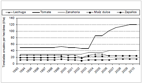 En el caso de tomate, el aumento observado entre ambos años obedeció al cambio en la modalidad de producción.