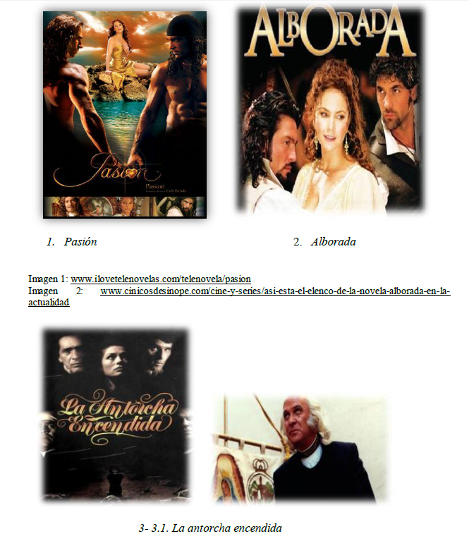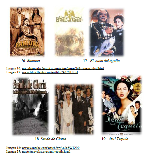 Asimismo, y como puede observarse en la tabla que reproducimos al final de este estudio21, la mayor parte de las telenovelas mexicanas de esta época fueron producidas por Ernesto Alonso (precursor de la denominada telenovela histórica junto al guionista Miguel Sabido) y representaron a buena parte de las protagonistas actrices como, Carmen Montejo, Maricruz Olivier o la española Amparo Rivelles22.