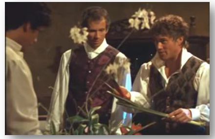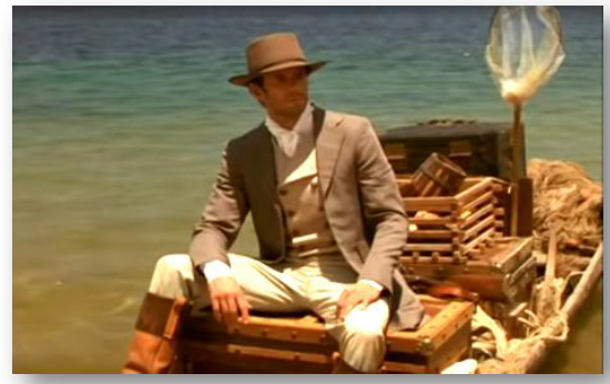 Asimismo, la película permite apreciar un rasgo fundamental del viajero ilustrado: su capacidad de observación. Ante ellos desfilan las costumbres de los pobladores, las tradiciones, los dialectos y los conocimientos propios de los informantes locales como el caso de Pedro Montana (Carlos Cruz), quien le proporciona “conocimientos excepcionales” sobre la fauna y la flora de su tierra (Imagen 3). Igualmente, observan el contraste entre los individuos y grupos humanos que hacían vida en el marco de la estructura colonial de la época. De esta forma, se establecen diálogos en medio de una alternancia con una realidad “Otra” que deja en evidencia, a través de comentarios y juicios, la necesidad que tiene el científico de la época de ser imparcial, tolerante, justo y ante todo un sujeto de “mente abierta” ante la inmensidad del universo.