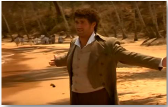 Protagnizada por el francés Christian Vadim (Humboldt), el canadiense Roy Dupuis (Bompland), las actuaciones de los venezolanos Carlos Cruz, Dimas González, Dora Mazzone y el español Armando Gota, la película Aire Libre narra las exploraciones de Humboldt y Bompland en Venezuela, refiriendo la costa americana, la exuberancia del paisaje y los aspectos demográficos de esa parte del continente. A modo de remembranza, intenta describir la histórica visita del barón Alexander von Humboldt a la Venezuela de finales del siglo XVIII y principios del XIX (Imagen 1), intentando dejar en el espectador una reflexión profunda sobre la realidad presente en las provincias hispanoamericanas que más tarde darían forma al país.4 Un acontecimiento que marca, sin duda, un hito en el contexto del género de los viajeros,5 toda vez que permite valorar la importancia de los testimonios de viaje en América, fundamentalmente, aquellos realizados bajo la influencia humboldtiana a lo largo de la centuria decimonónica.