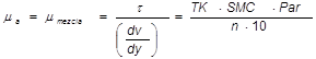 La expresión que sirvió de base al cálculo de la viscosidad aparente (µa) es la ecuación 4, la cual se determina a partir de lo expuesto en el Manual M/03-165, del 2006.