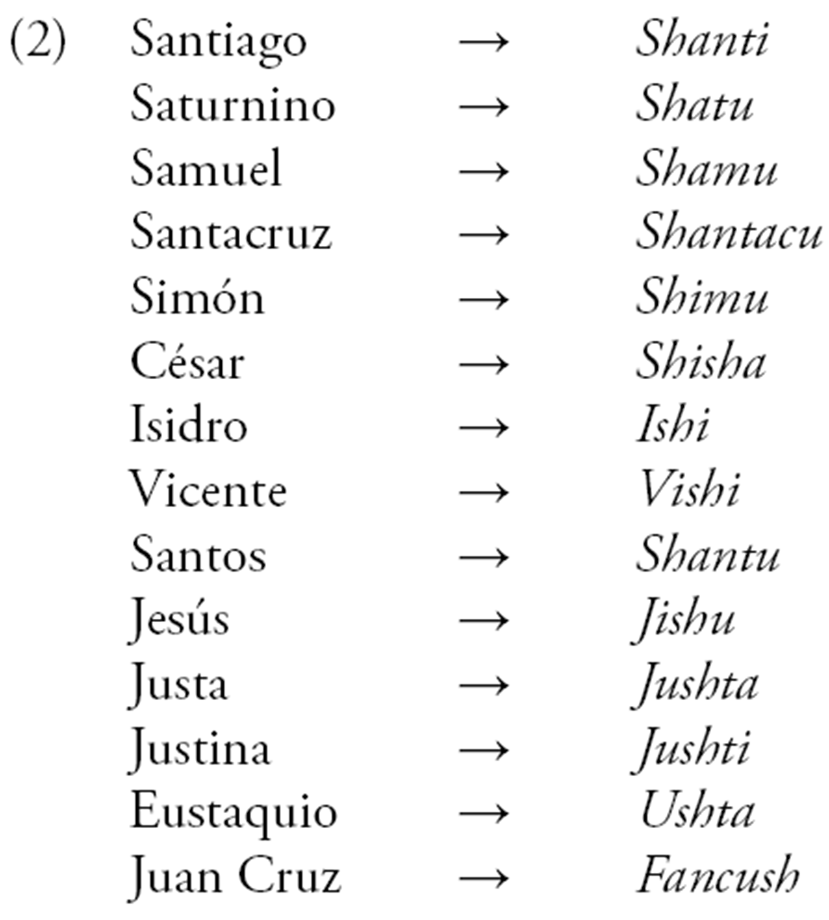 /s/ → [š]. Conviene señalar en este punto, en primer lugar, que la sibilante palatal [š] en el quechua huanca, es decir la <sh>, es solo un alófono de /ş/, ya que este fonema debe manifestarse como palatal cuando aparece en contacto con la vocal /i/ en una misma sílaba (Cerrón-Palomino 1976: cap. 2, § 2.14; 1989: cap. VII, § 7.3.4). Como recurso expresivo, sin embargo, goza del privilegio de aparecer irrestrictamente en cualquier posición. Seguidamente ofrecemos algunos ejemplos que ilustran lo señalado (donde la /s/ castellana, representada por <s>, <c> y <z>, pasa a <sh>):