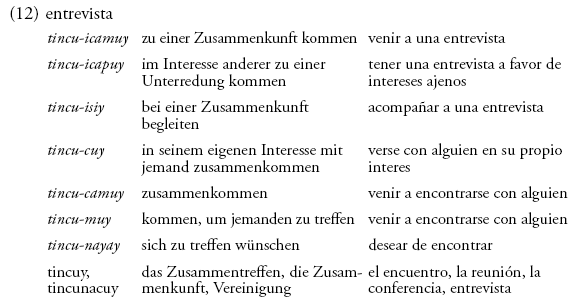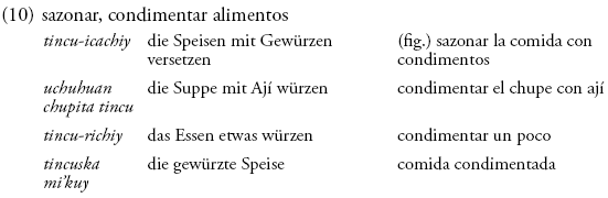 En el diccionario (Wörterbuch) trilingüe de Ernst Middendorf (1890: 819-821) tincu- se asocia con: