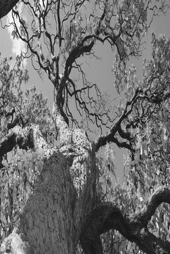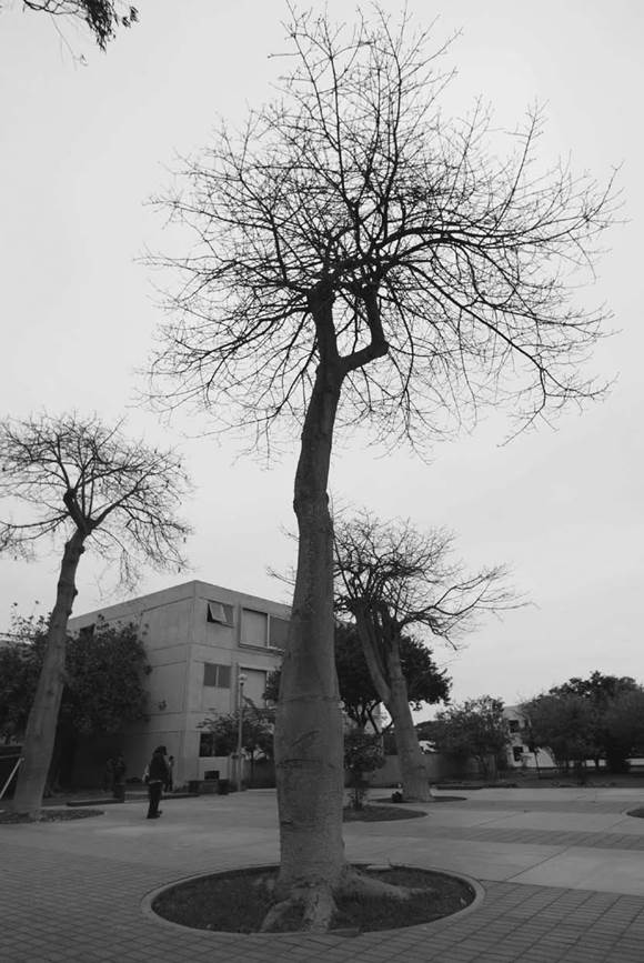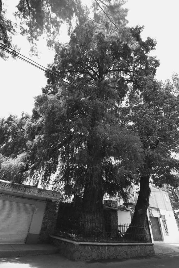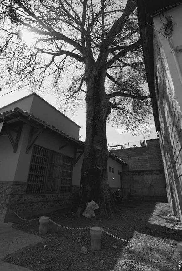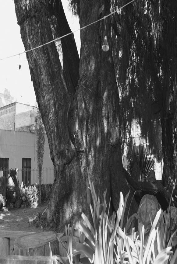 Ahondar sobre la calidad testimonial del registro fotográfico no es necesario, la contundencia de su contenido visual es reconocida. En la actualidad la fotografía se ha convertido en un importante instrumento de constatación de lo que sucede, de lo existente, de lo visible; la fotografía posibilita el conocimiento de otro tiempo, constituye un claro testimonio del pasado. Presencia arbórea reúne una serie de fotografías que testimonian la presencia de los árboles en nuestra cotidianidad, en nuestro entorno inmediato; presencia que busca el reconocimiento de su ser-estar entre nosotros, de su existencia, que busca llamar nuestra atención, nuestra mirada distraída, perdida, que no se detiene en ellos, que los ignora, los invisibiliza. | El contexto de estas imágenes es variado y la presencia arbórea capturada se encuentra difuminada tanto en espacios abiertos al interior de la Pontificia Universidad Católica de Perú en Lima, los jardines de la Universidad Nacional de Colombia en Medellín o el club campestre Monte Sur en Xochimilco, donde su presencia ha sido respetada y procurada; como también en las tranquilas calles de pueblos como Bernal, Querétaro, Santa Fe de Antioquia, o en los barrios de San Marcos y San Juan en Xochimilco; la singularidad de otros espacios como el centro ceremonial de Kaminaljuyú en Guatemala, el Parque Ecológico de Xochimilco y la zona arqueológica de Toluquilla, Querétaro, permitieron este encuentro intencional. | Retratar la presencia del arbolado abre la posibilidad de mirar a estos individuos singulares que se erigen frente a nosotros con una riqueza morfológica digna de apreciar, valorar, conservar, proteger... sus caprichosos quiebres, su imponente altura, el grosor de su tronco, la textura de su corteza dan cuenta de una riqueza visual que la miopía de funcionarios y empresarios no puede y no quiere ver. Apresar su imagen y mostrarla en otros contextos busca promover el reconocimiento de su arraigo a la calle, al barrio, la colonia, a la plaza, al jardín, al parque; como importantes testigos inmóviles de pequeñas y grandes transformaciones sociales y urbanas que han librado fuertes batallas contra la sierra, el machete, la tala, el automóvil, la banqueta, el muro, el edificio, la urbe. Presencia arbórea es un testimonio de su existencia y al mismo tiempo memoria de la ciudad, del pueblo, de la calle, del entorno cambiante.