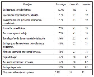 Descriptores sobre el concepto escuela: análisis cuantitativo
