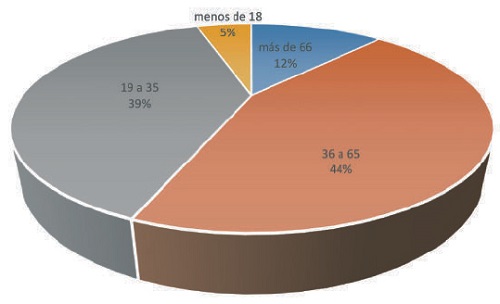 Entre agosto y septiembre de 2017, la asistencia durante los fines de semana al MAT alcanzó, aproximadamente, las 3000 personas.43 Pero ¿quiénes fueron estos visitantes? Para intentar una respuesta, decidimos llevar adelante, durante los meses señalados, un estudio que se concentró en las diferencias y las singularidades de los micropúblicos dentro del conjunto mayor del público de fin de semana -el menos caracterizado en este tipo de entidad patrimonial-. El trabajo de campo tuvo lugar durante estos meses, un día del fin de semana, en los horarios de apertura y cierre del establecimiento.44 La recolección de los datos se instrumentó mediante breves entrevistas semiestructuradas que llevé adelante personalmente; se efectuaron en español, aunque también fueron respondidas por hablantes de otras lenguas -portugués, francés, inglés- que manifestaban comprender el idioma. Se realizaron en la puerta del museo a todos aquellos visitantes que se mostraron dispuestos tras finalizar su recorrido; la tarea dio por resultado un total de 383 personas consultadas, de diversos rangos etarios y nacionalidad. La entrevista consistía en dieciséis preguntas; cinco de carácter sociodemográfico y el resto sobre la experiencia de la visita al museo -algunas con presentación de opciones, y otras, abiertas-.