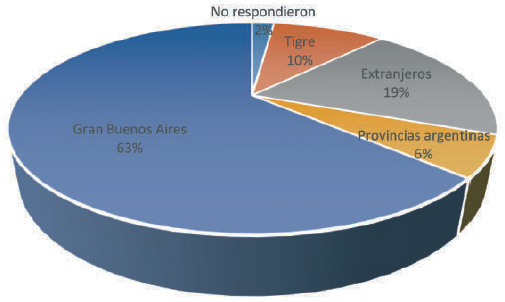 Al indagar el lugar de procedencia de los visitantes, se registró que solo un 12% de ellos formaba parte de la comunidad de Tigre, mientras que la mayoría -el 88%- no se encontraba radicada allí -un 63% de personas provenían del Gran Buenos Aires; un 19% estaba compuesto por extranjeros; y el restante 6% lo integraban individuos de otras provincias argentinas-. Este último dato puede vincularse con las características propias de la ciudad, ya que recibe una gran afluencia de visitantes, pues se trata de una zona turística. La sede museal, por otra parte -como ya dijimos-, se encuentra ubicada en el paseo ribereño, entre las otras ofertas de entretenimiento del circuito turístico. Esta situación ya fue señalada cuando se observó que la mayoría de los entrevistados manifestaban visitar ese museo por primera vez.