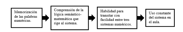 Con base en la literatura en el campo, es posible entonces reconocer dos objetivos centrales de una didáctica de la numeración oral de una lengua. El primero de ellos implica apoyar la memorización de los nombres de los primeros números y, el segundo, la comprensión de la lógica semántico-matemática que rige al sistema de numeración, incluyendo sus irregularidades.