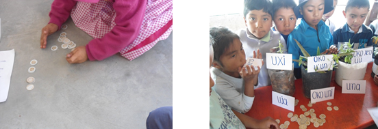 El dinerito ñuu savi resultó ser un recurso muy útil. Éste fue empleado en una actividad en que se jugó a comprar y vender plantas medicinales que los niños trajeron de sus casas (ver Figura 6).