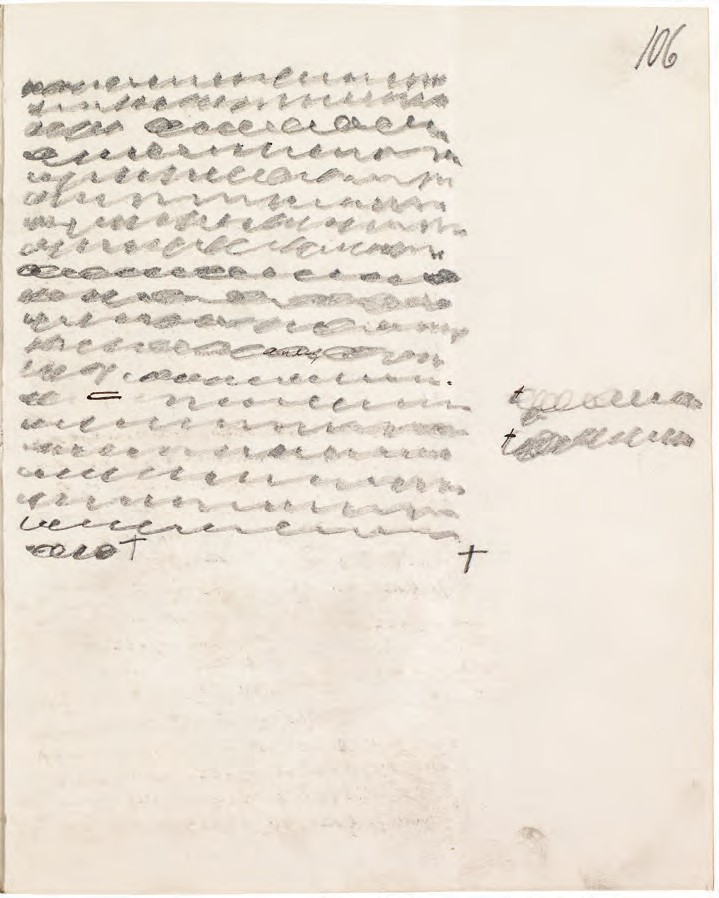 Copia virgen de “Cristo es el camino” de “Para un examen de sí mismo recomendado a este Tiempo.” Una parte sustancial del texto ha sido borrada a lápiz y reemplazada con la adición al margen escrita en tinta en la página 106.