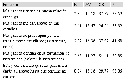 Lo anterior parece ser obvio, pero las universidades no suelen considerar estos aspectos dentro de su política institucional, para identificar oportunamente a estudiantes con bajos rendimientos académicos o posibles desertores. Asimismo, los resultados revelan que una familia vigilante del desempeño estudiantil de su hijo está pendiente de la asistencia a clases, los problemas académicos, la realización y entrega de tareas o trabajos académicos, así como del entorno social universitario. Lo cual muestra que durante el proceso de transición escuela-universidad, existen aspectos como el acompañamiento familiar, que continúa en la etapa post secundaria y que concluye cuando el estudiante alcanza un alto grado de autonomía y responsabilidad para con su propio aprendizaje.