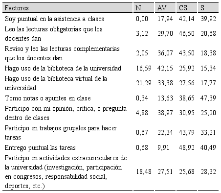En un nivel de carácter individual, se observa que las falencias con respecto a los saberes previos de los estudios, son abordadas por los estudiantes a partir de la asistencia y la toma de notas o apuntes en clase. A un nivel grupal o colectivo, la estrategia se sitúa en participar en grupos a modo de generar un aprendizaje cooperativo y colaborativo, que permita contrastar y verificar lo aprendido a nivel individual. Asimismo, en ambos niveles si sitúa una actitud positiva a presentar en los plazos establecidos por los docentes los trabajos académicos requeridos (tareas). Sin embargo, cabe anotar que los espacios de aprendizaje siguen los niveles antes expuestos: La casa y el aula. La asistencia a otros espacios como las salas de lectoría o las bibliotecas para reforzar los aprendizajes, son aún un punto de inflexión y de poca recurrencia por parte de los estudiantes.