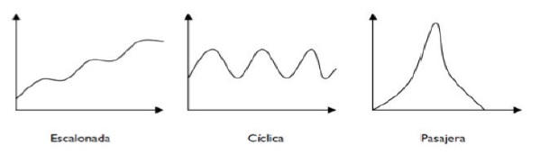 Lo mismo cabe señalar respecto a la falta de previsión con relación a los posibles perfiles de la crisis y su tratamiento comunicativo. Los modelos dinámicos de comunicación de crisis no sólo plantean, como se ha indicado, un checklist distinto para cada momento de la evolución de toda crisis, sino que muestran que resulta conveniente considerar que la crisis describirá el típico «arco» temporal, que señala –entre otros– Campbell (2015), y lo más probable es que se produzca una mejora paulatina, más rápida o más lenta, en función del tipo de crisis. De este modo, el perfil de las crisis puede variar, como muestra el Gráfico 6, según las crisis exhiban una pauta más escalonada, más cíclica o más efímera o rápida y pasajera (González Herrero, 1998).