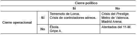 Esta dualidad, sin embargo, crea la posibilidad de desajustes entre ambos momentos de cierre, puesto que se puede producir una simultaneidad entre ellos, como en las crisis de Lorca y de los controladores aéreos, o bien un desajuste y una secuenciación temporal de los mismos. Así, en las crisis sanitarias, como la del Ébola o la de la gripe A, sus cierres políticos son previos al cierre operativo, puesto que, una vez dada por clausurada la alerta correspondiente ante la opinión pública, los protocolos de salud exigen esperar determinados periodos de tiempo para descartar la reproducción de la enfermedad. En cambio, en otras crisis, como la del Prestige, el metro de Valencia o el Madrid Arena, el cierre operativo antecede al cierre político, en la medida en que la protesta organizada de los afectados y la exigencia de responsabilidades judiciales mantiene abierto el proceso político derivado de la crisis.