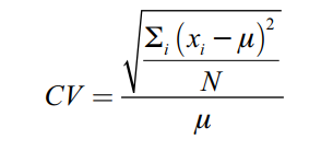 (1)Como indicador de dispersión estadística se utilizó el coeficiente de variación (2), el cual es simplemente la desviación estándar normalizada por la media. En (2), (3) y (4) xi es el IPCF del individuo i, μ es la media del IPCF y N el tamaño poblacional. Este indicador, a diferencia de la varianza (y la desviación) es independiente de la escala, y cumple con el resto de propiedades deseables indicadas antes.