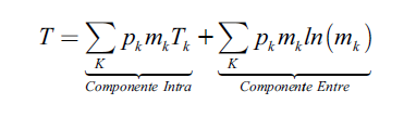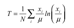 (3)Por último, se consideró el índice de Theil dentro de la familia de indicadores de entropía. El índice de Theil es especialmente útil en el análisis de la desigualdad del ingreso elaborada en este artículo, ya que cumple con el principio fuerte de transferencias, y además su descomposición entre subgrupos es consistente con la desigualdad agregada. En la cuarta sección del artículo se dará especial relevancia al análisis de la desigualdad del ingreso utilizando el índice de Theil, cuya estimación con microdatos se realiza a partir de la ecuación (4).