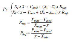 Pmin: valor del puntaje asignado al valor mínimo de la variable